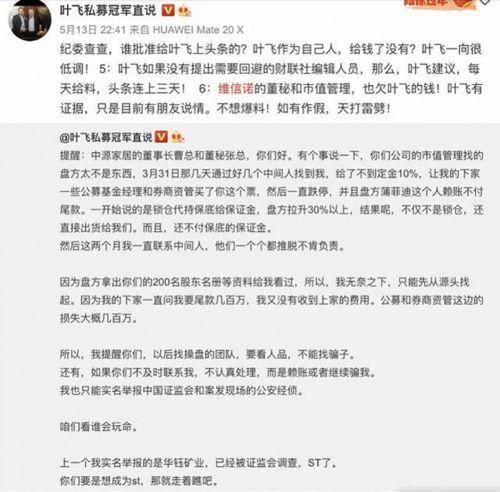 就在人们以为叶飞会继续在金融界创造辉煌时,一起惊天动地的案件爆发了。据网友爆料,叶飞涉嫌内幕交易、操纵股价等违法行为,涉案金额高达数十亿元。